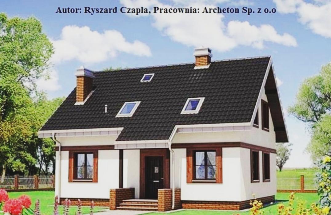 - Dach dwuspadowy z więźbą drewnianą, pokryty blachodachówką w kolorze ceramiki
