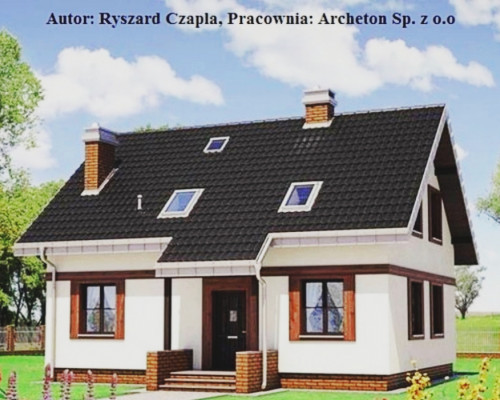 - Dach dwuspadowy z więźbą drewnianą, pokryty blachodachówką w kolorze ceramiki