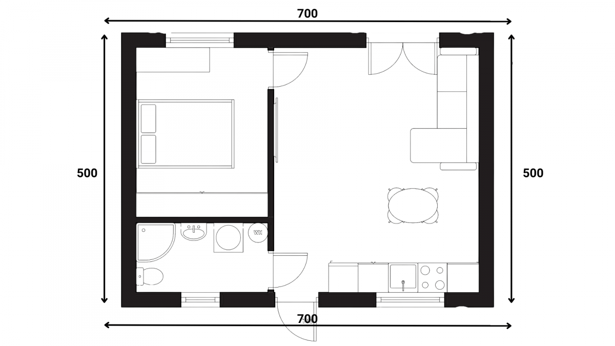 jedyny wariant ze ścianami działowymi